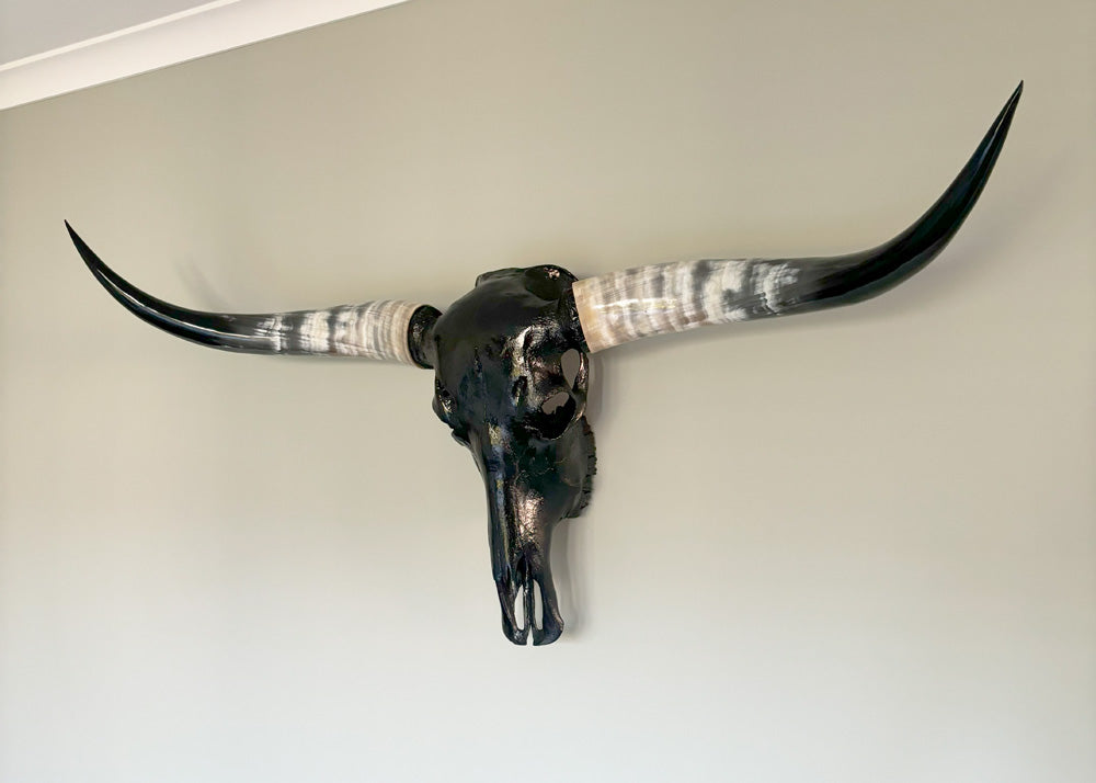 The authentic longhorn skull is a stunning and rare item that will surely add a touch of unique beauty to any wall collection. The skull is ethically sourced and hand-carved ,making each piece one-of-a-kind. This exquisite work of art is a true testament to the skill and craftsmanship of the artist who created it. Don't miss out on the opportunity to own such a remarkable piece.