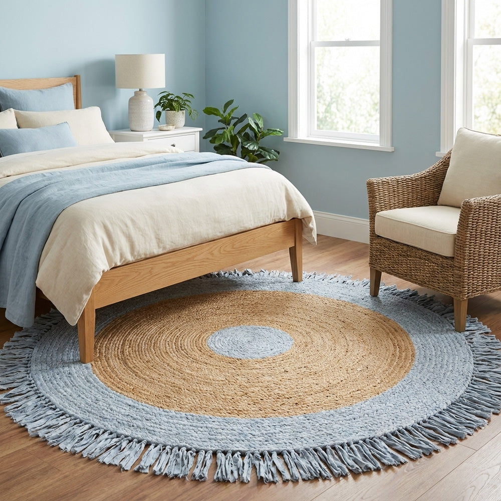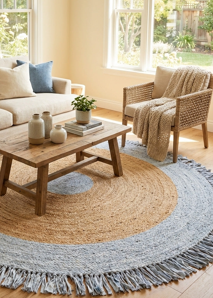 Be ready for a relaxed and comfortable feel with this 100% handmade rug crafted with Pure Natural Braided Jute and cotton. It is made with 100 % natural fibre by remote village women weavers. It is vertically woven. It is a hard pile jute rug which is easy to clean.