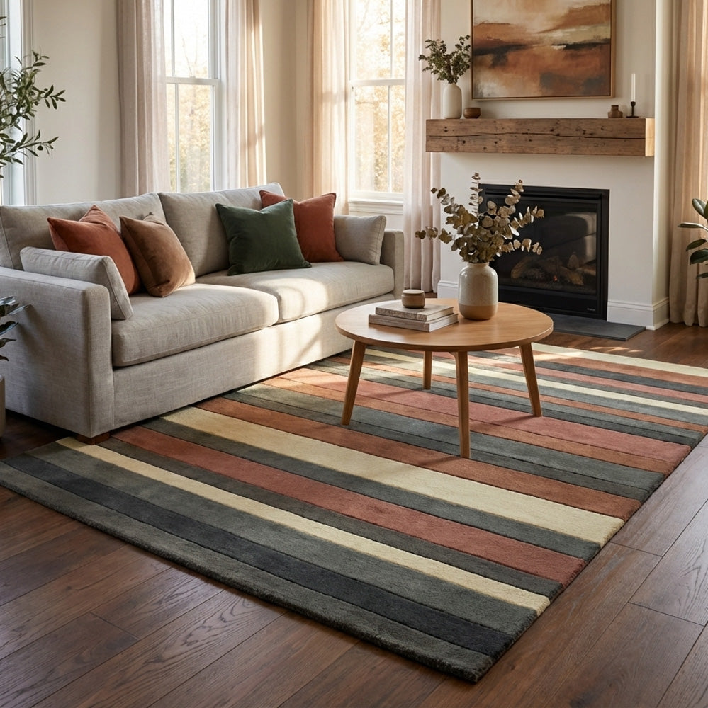 The elegant yet straightforward layers of colors make this wool rug a perfect addition to any modern home decor. The eye-catching linear hand-carved design and cheerful colours make this rug an ideal centre of attraction. Stripe series rug proudly designed in New Zealand.