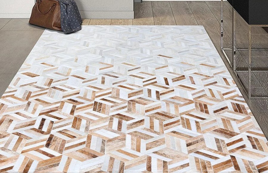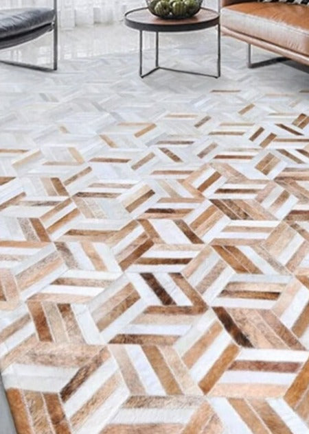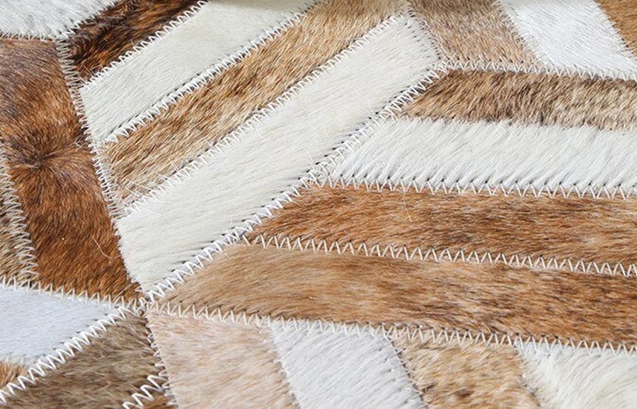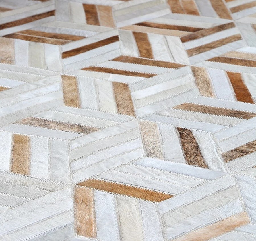 Tricolor Stripes Cowhide Patchwork Rug