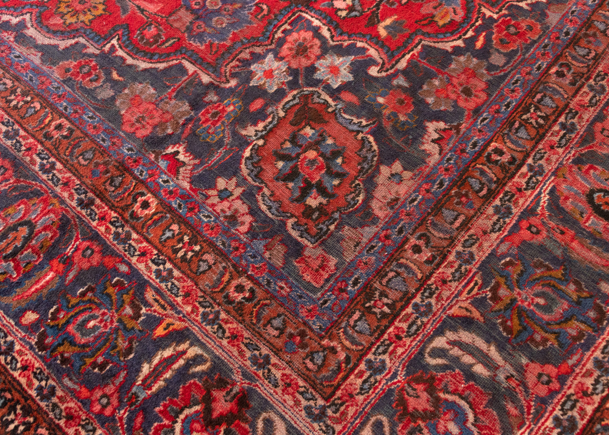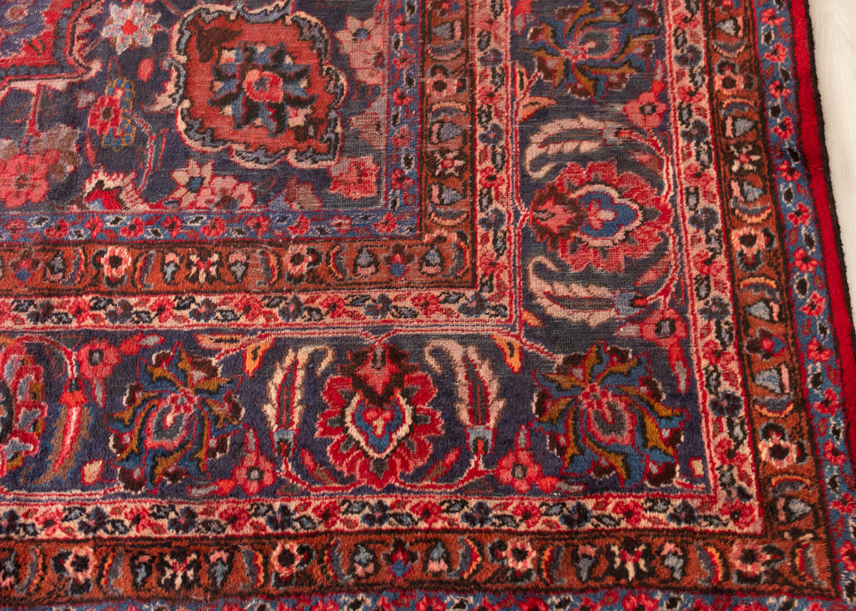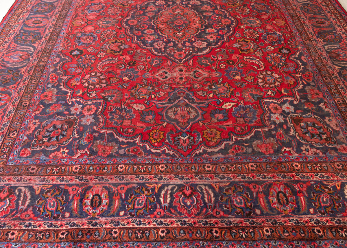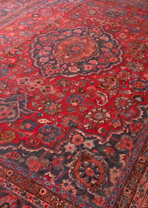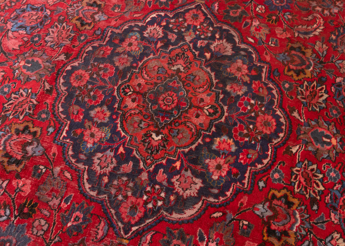 Azghand rugs are made by tribal weavers who live in Khorasan tribes. They made carpets used by Persian knots. They use colours, element designs and patterns on broader according to weaving area and locations of carpets. Most of the time these rugs have floral medallion in the middle traditional designs with the red burgundy base colour.