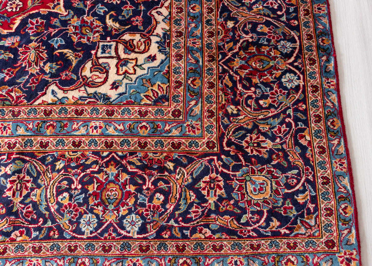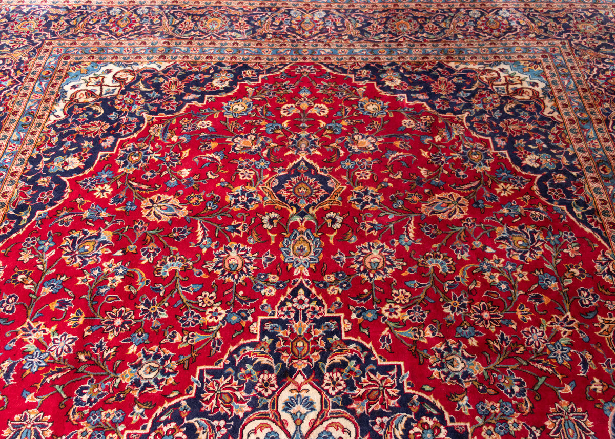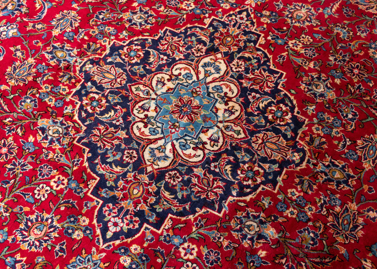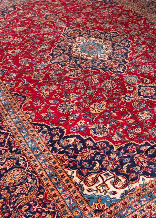 Kashan rugs are originated from Kashan an oasis town along the Kavir desert in central Iran. It is the oldest and one the best carpet producer city in Iran. Kashan carpets are extremely fine quality and dense knots rugs which are famous all over the world. Kashan Carpets are mainly in a red medallion with a blue colour combination. These designs usually use flowers, leaf and other motifs.