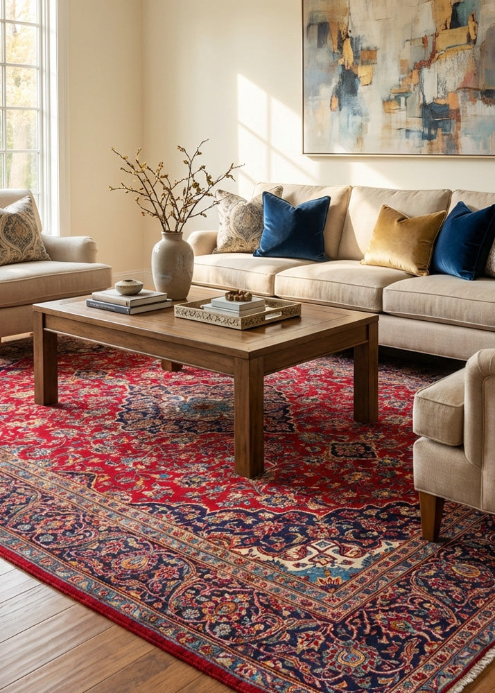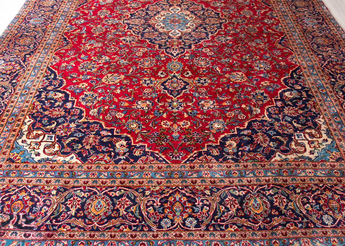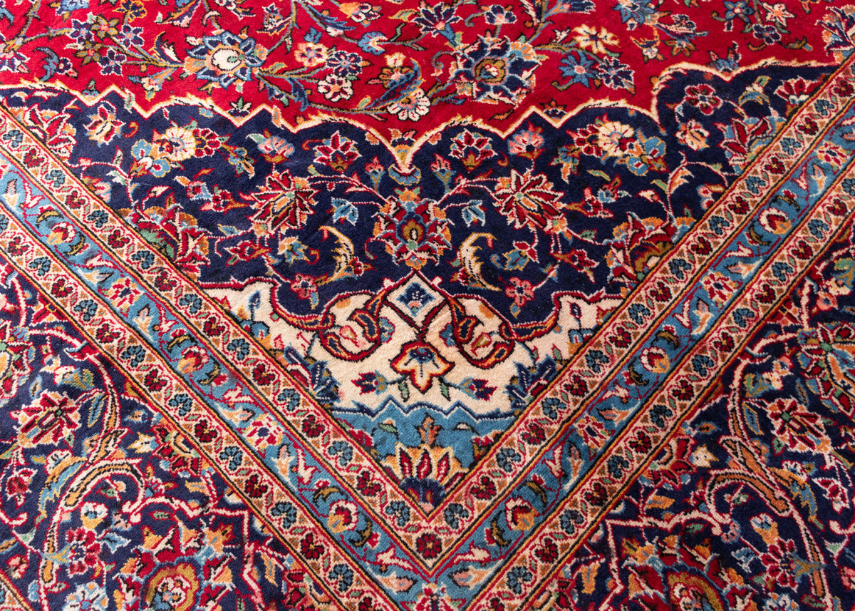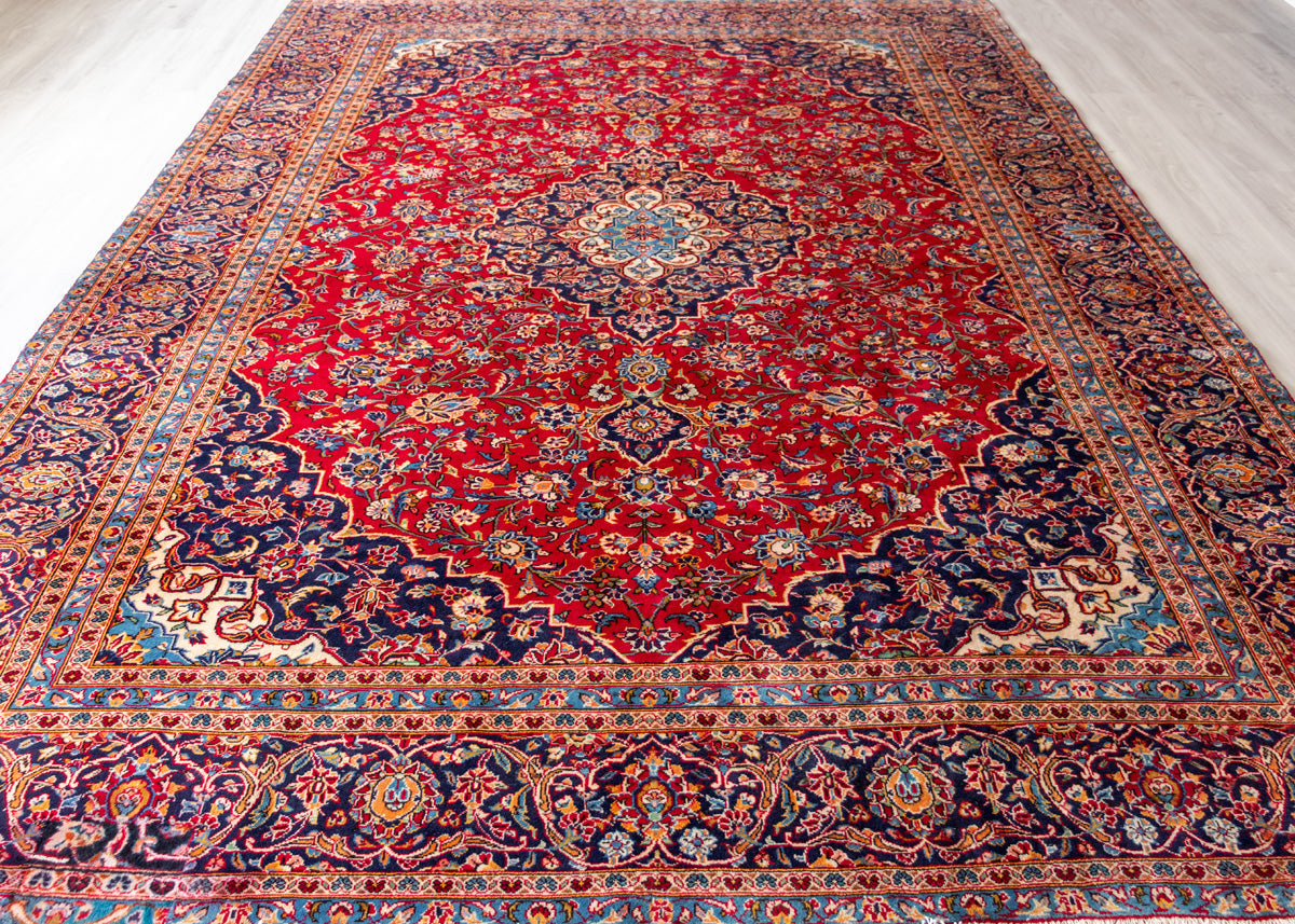 Kashan rugs are originated from Kashan an oasis town along the Kavir desert in central Iran. It is the oldest and one the best carpet producer city in Iran. Kashan carpets are extremely fine quality and dense knots rugs which are famous all over the world. Kashan Carpets are mainly in a red medallion with a blue colour combination. These designs usually use flowers, leaf and other motifs.