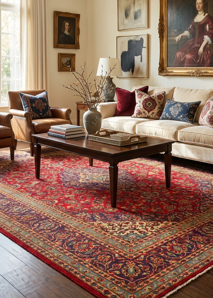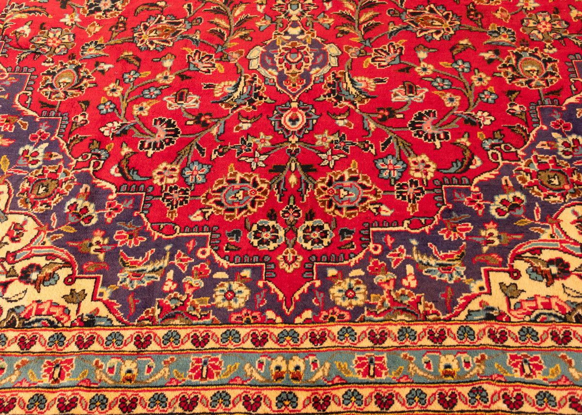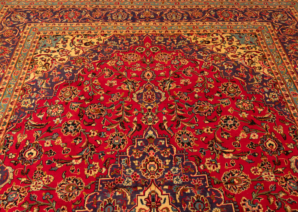 Kashan rugs are originated from Kashan an oasis town along the Kavir desert in central Iran. It is the oldest and one the best carpet producer city in Iran. Kashan carpets are extremely fine quality and dense knots rugs which are famous all over the world. Kashan Carpets are mainly in a red medallion with a blue colour combination. These designs usually use flowers, leaf and other motifs.