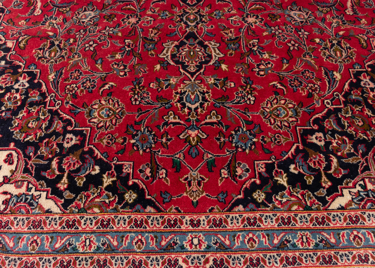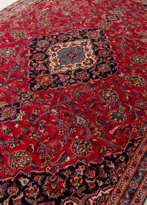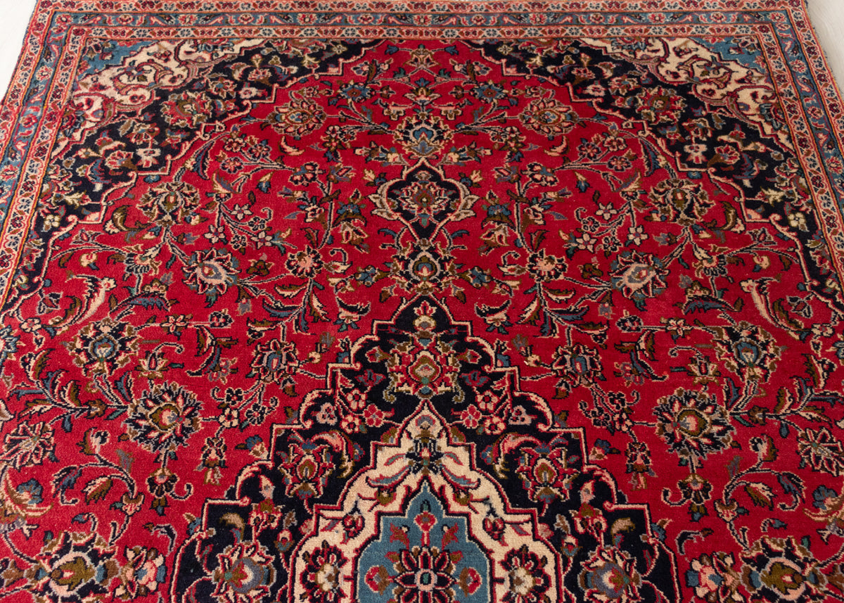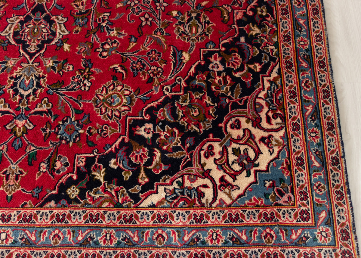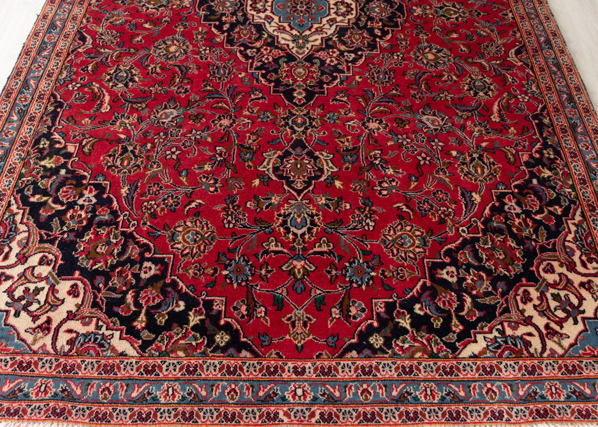 Kashan rugs are originated from Kashan an oasis town along the Kavir desert in central Iran. It is the oldest and one the best carpet producer city in Iran. Kashan carpets are extremely fine quality and dense knots rugs which are famous all over the world. Kashan Carpets are mainly in a red medallion with a blue colour combination. These designs usually use flowers, leaf and other motifs.