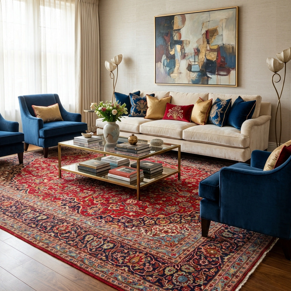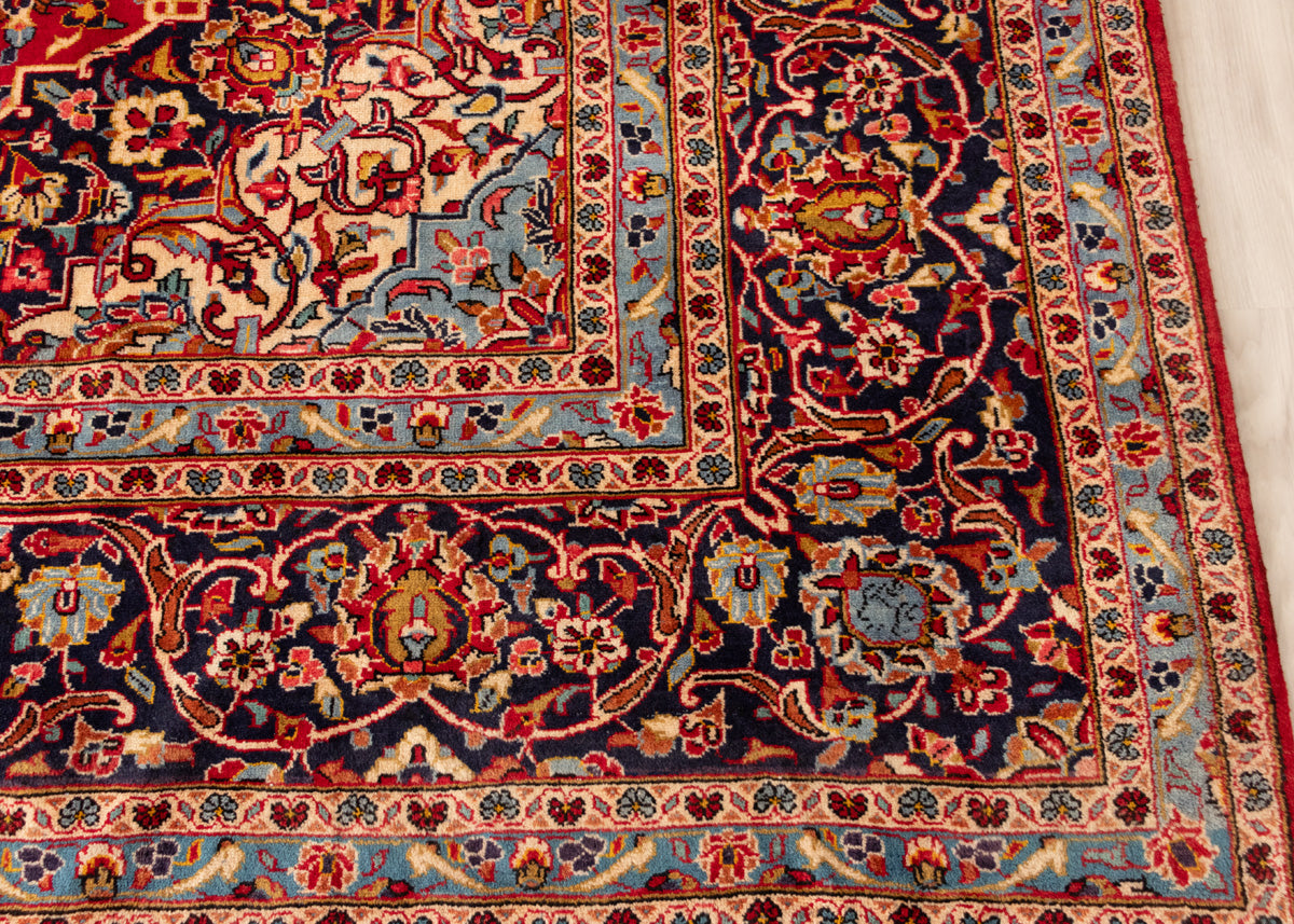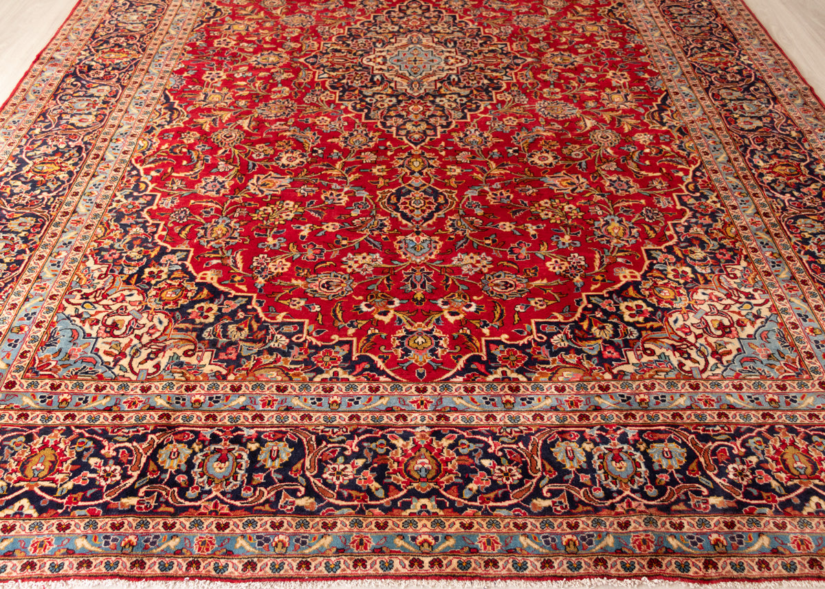 Kashan rugs are originated from Kashan an oasis town along the Kavir desert in central Iran. It is the oldest and one the best carpet producer city in Iran. Kashan carpets are extremely fine quality and dense knots rugs which are famous all over the world. Kashan Carpets are mainly in a red medallion with a blue colour combination. These designs usually use flowers, leaf and other motifs.
