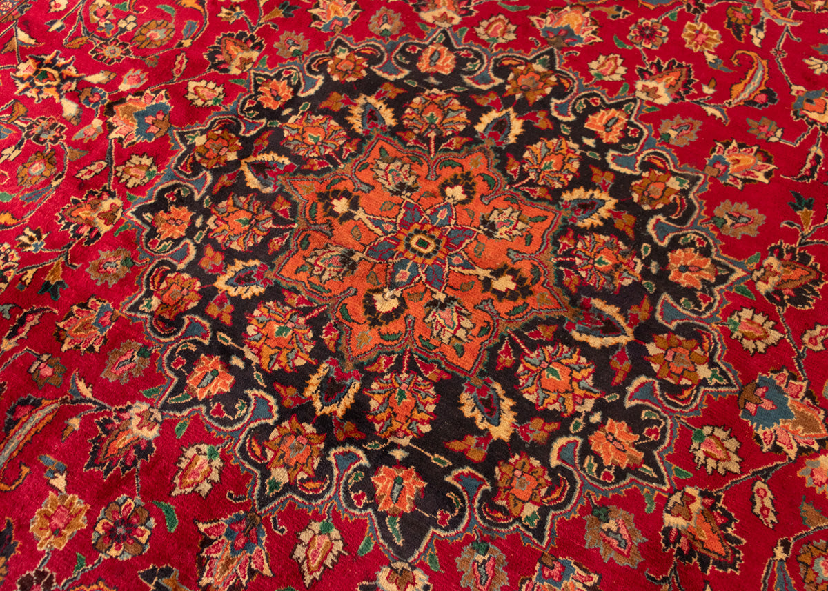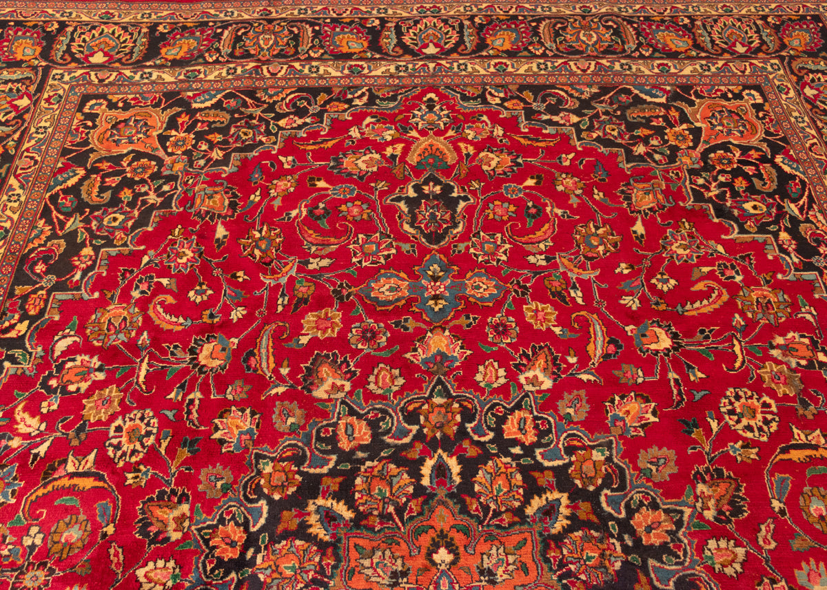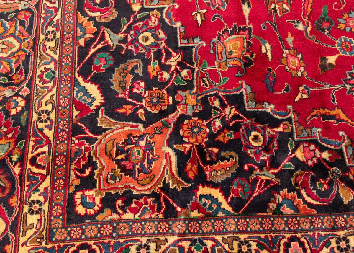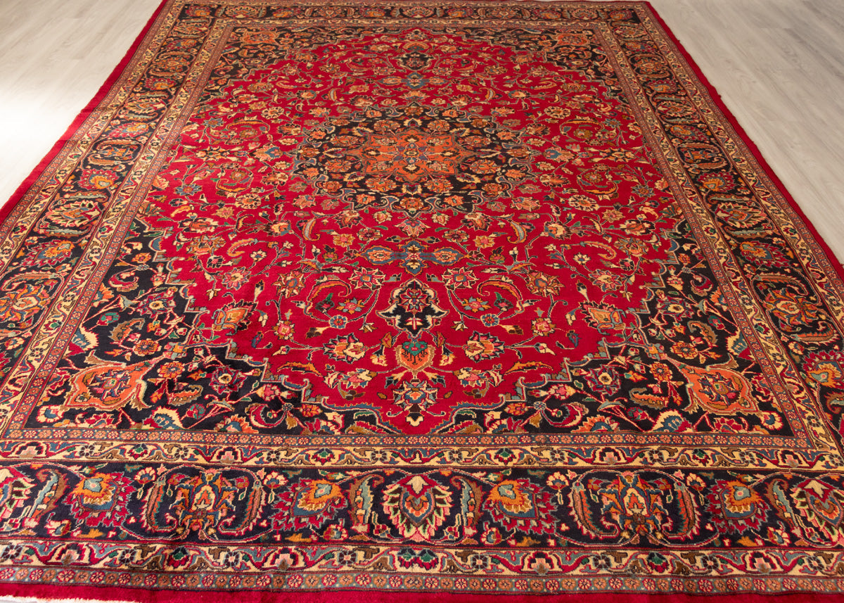 Mashad rugs are originated from Mashhad city which is located Khorasan province of northeastern Iran. Mashhad is the ancient city of Khorasan, and it was the capital of Khorasan province. It is a holy place and destination for pilgrims. Mashad hand-knotted rugs in the sixteenth to eighteenth have floral designs with beautiful colour combinations. Mashad carpets colouration background generally in red-blue or pomegranate-red. Normally in the designs used palmettes, flowers, leaves, vines, stylized motifs, and minor borders.