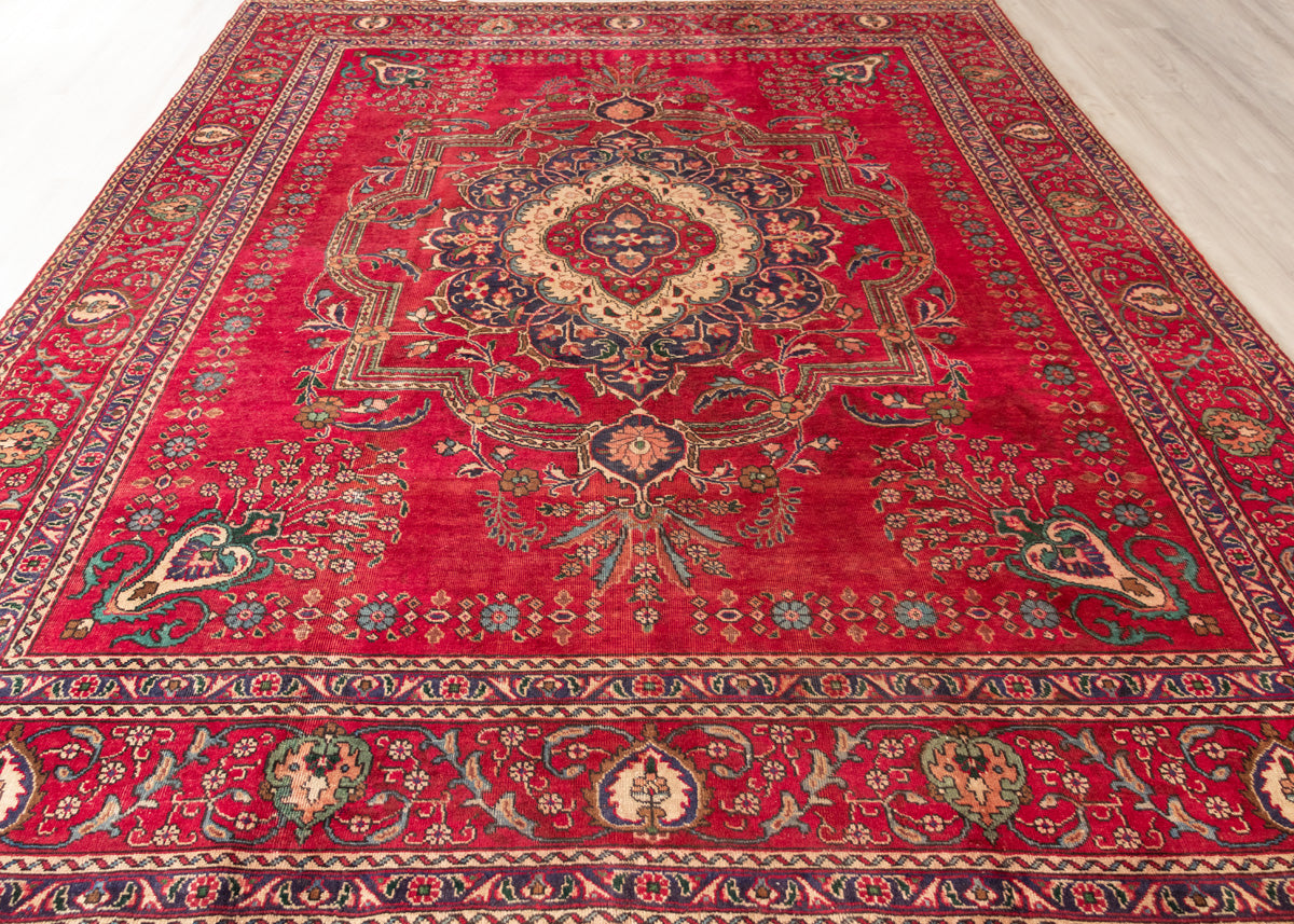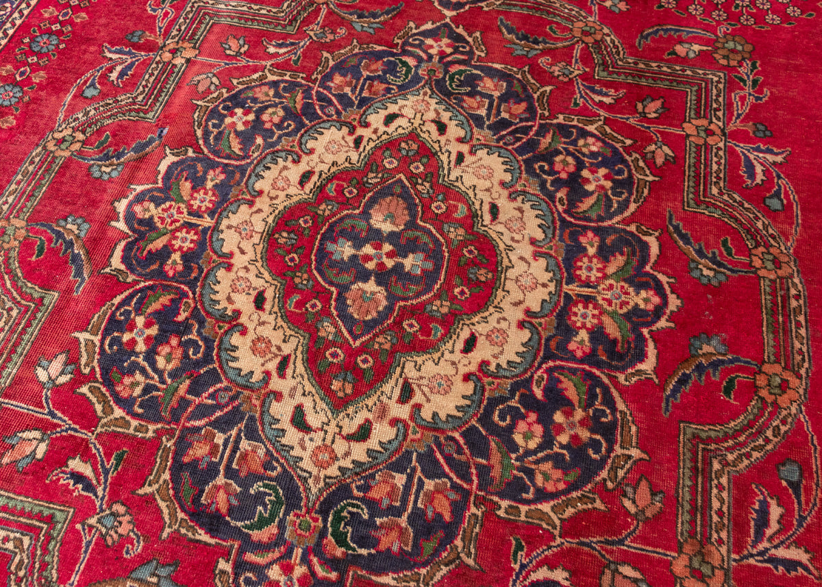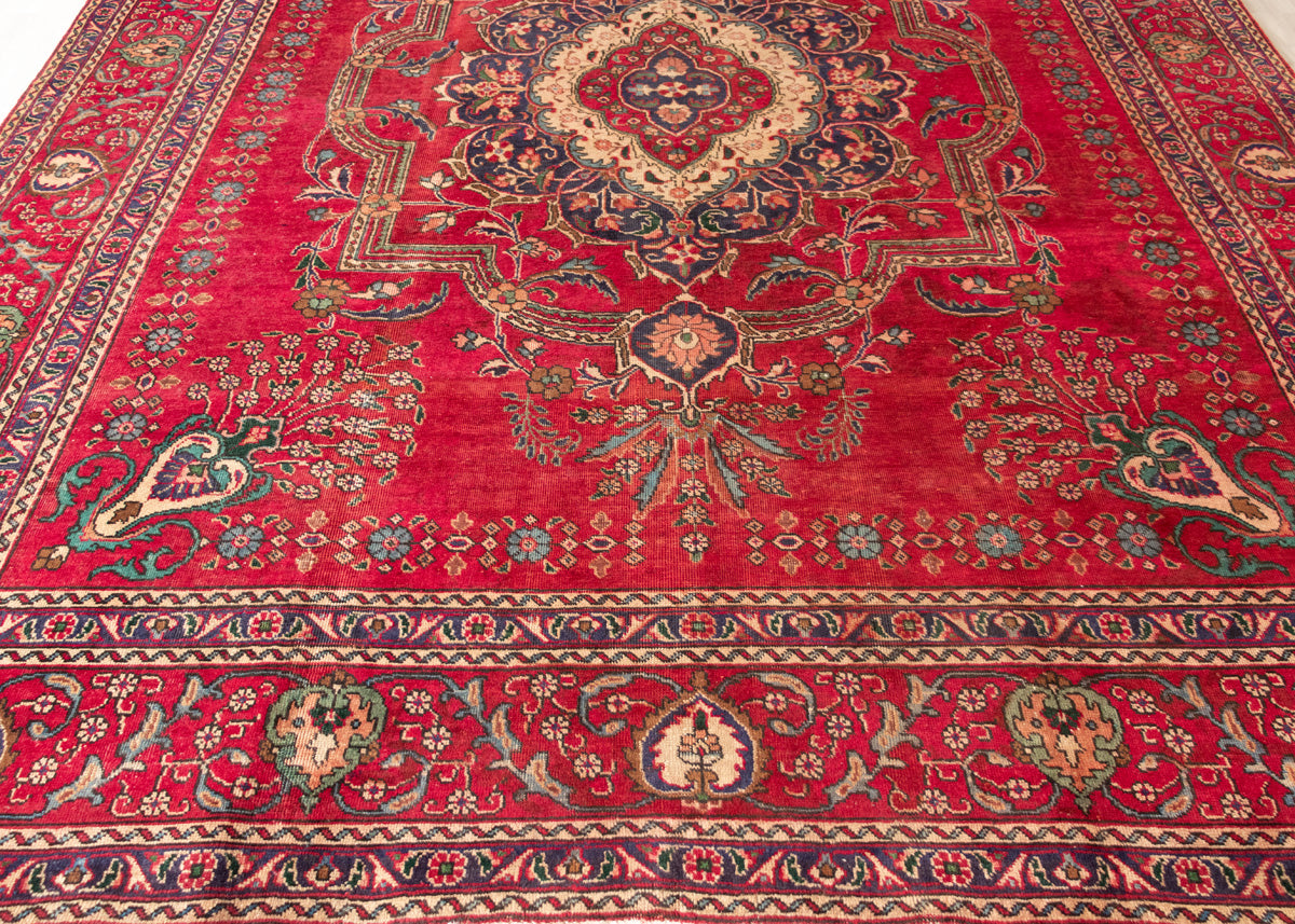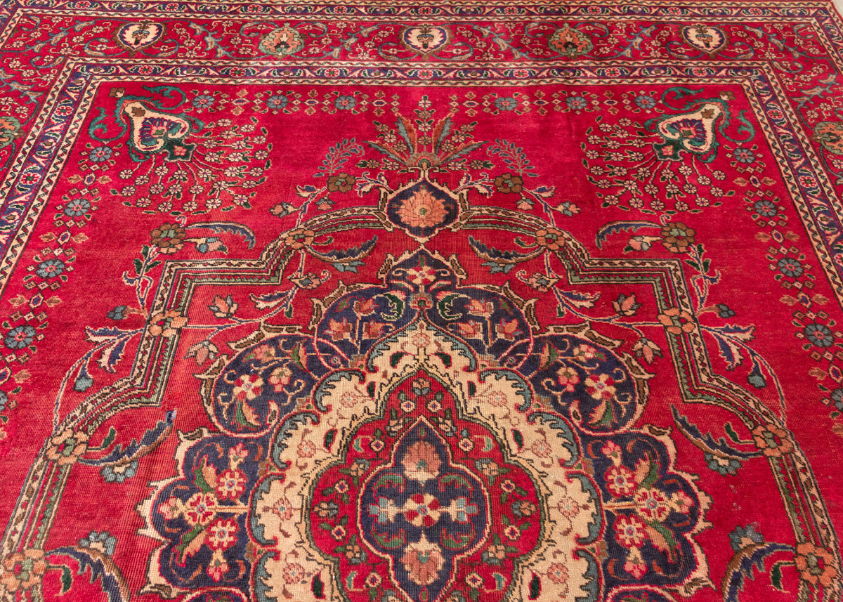 This antique Tabriz rug is over 70 years old. Tabriz rug/carpet is one of the most famous categories of Persian carpets. This came from the city of Tabriz, the capital city of East Azarbaijan Province in the northwest of Iran. It is one of the oldest rug weaving centres in Iran that produce the most valuable and famous rugs in the world.
